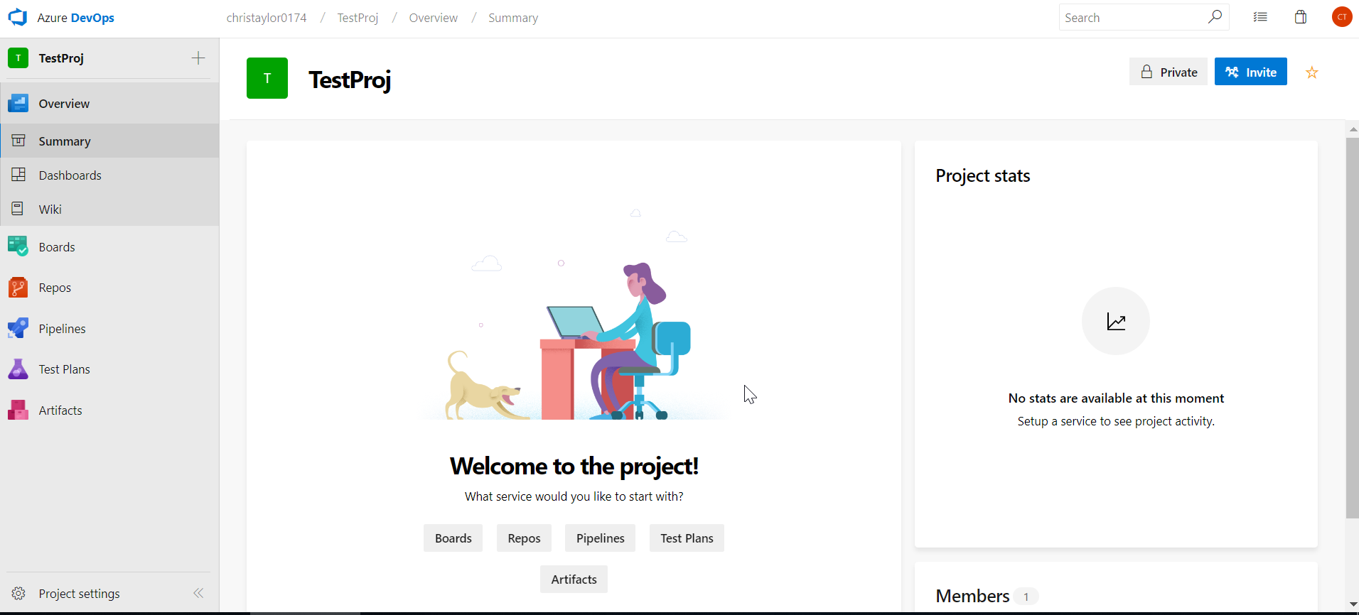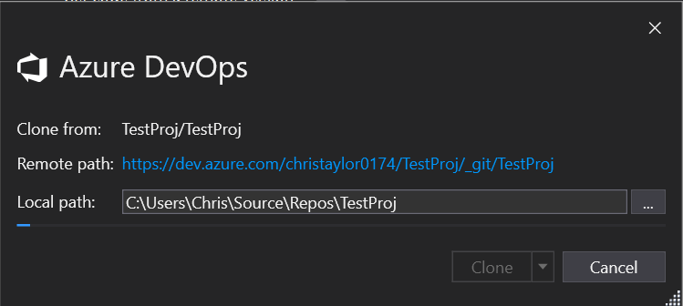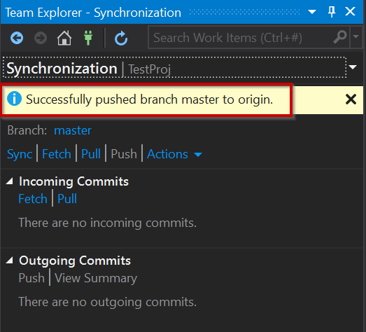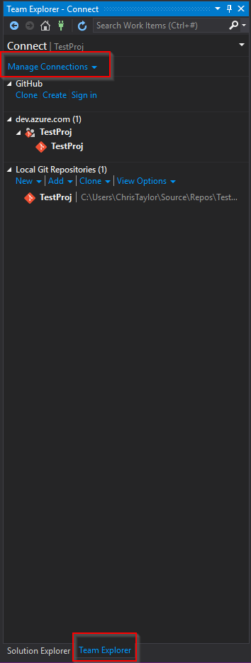 Select the project we have created – TestProj”: