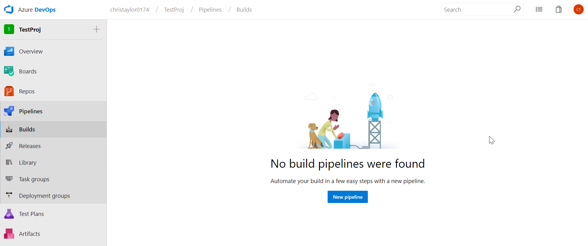 Now that we have created the service connection, we can now look to create our Build Pipeline. Select Builds from the menu on the left and click “New Pipeline”
