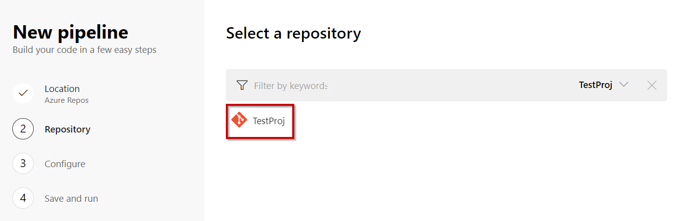 Select the repository where the project you wish to build resides, in our case it is Azure Repos: