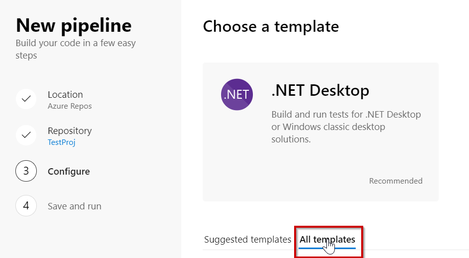 You will now be presented with the option to use a Build Pipeline template or start from scratch.