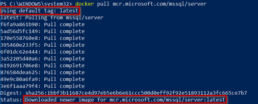 docker pull mcr.microsoft.com/mssql/server #This will pull the latest version